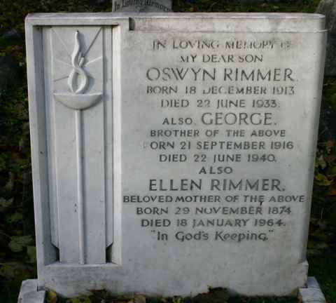 George Rimmer's grave is at the side of the path on the South side of the church. We have a report of his funeral from the Ormskirk Advertiser of 4th July 1940 - it is reproduced on the left.